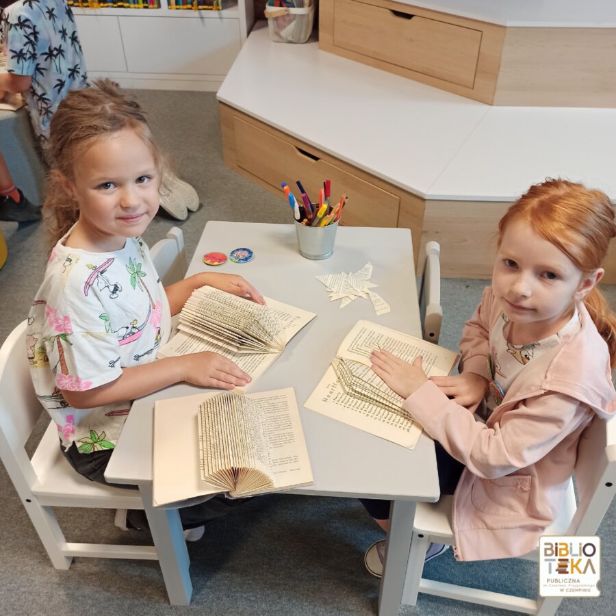 Pierwszy dzień rozpoczęliśmy od poznania się a następnie zamieniliśmy stare książki w bardzo kreatywne twory t.j. jeżyki, myszki oraz budki dla ptaków.