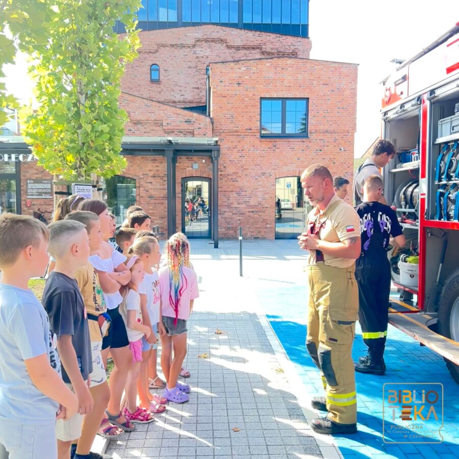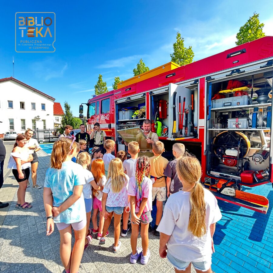 Podczas drugiego dnia każdy z uczestników mógł poczuć się jak strażak a to wszystko dzięki OSP Czempiń, którzy zgodzili się nas odwiedzić. Panowie strażacy przekazali nam mnóstwo ciekawych informacji, cennych lekcji oraz pokazali dokładnie co skrywa wóz strażacki. W drugiej części zajęć dzieciaki tworzyły kartki z ulubionym bohaterem na wakacjach.