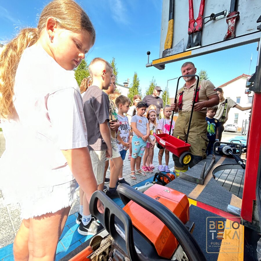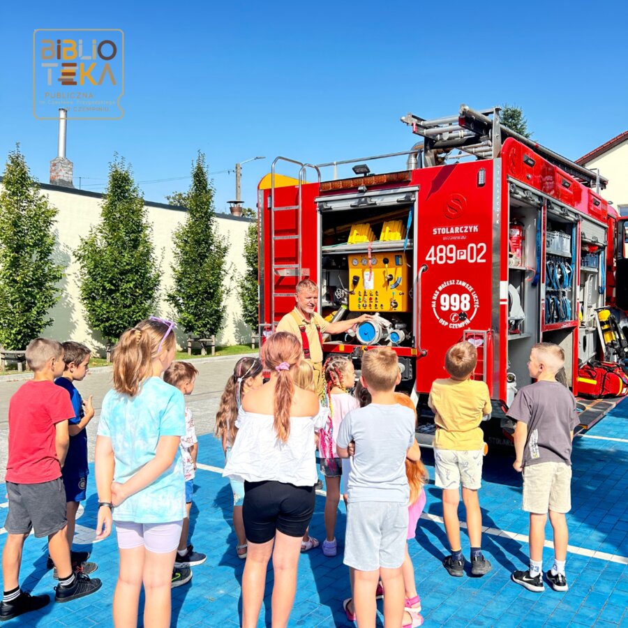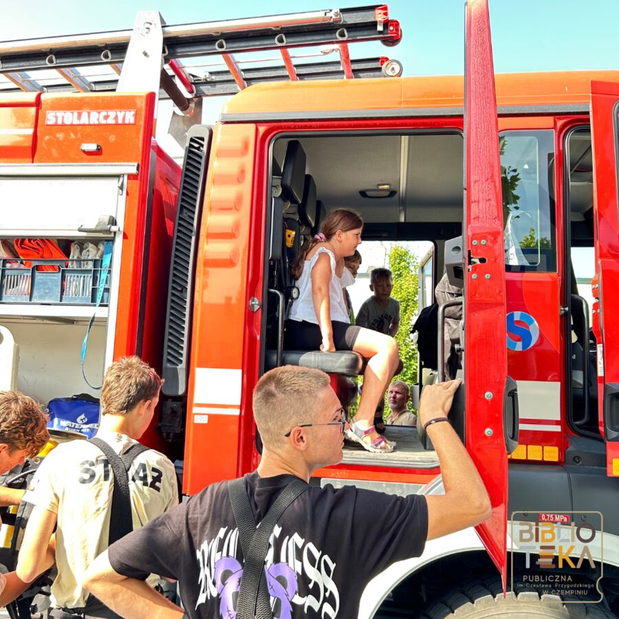 Podczas drugiego dnia każdy z uczestników mógł poczuć się jak strażak a to wszystko dzięki OSP Czempiń, którzy zgodzili się nas odwiedzić. Panowie strażacy przekazali nam mnóstwo ciekawych informacji, cennych lekcji oraz pokazali dokładnie co skrywa wóz strażacki. W drugiej części zajęć dzieciaki tworzyły kartki z ulubionym bohaterem na wakacjach.
