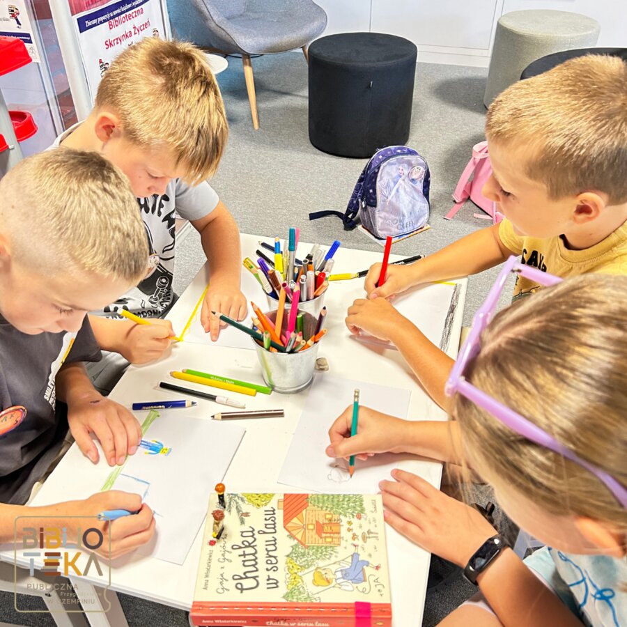 Podczas tegorocznych wakacji nasza biblioteka organizowała zajęcia dla dzieci pt: „Lato w Bibliotece” . W ciągu pięciu dni nasi uczestnicy mieli okazję poznać zwyczaje panujące w bibliotece, rozszerzali swoją wiedzę nt. poszukiwania ulubionych książek, rozwijali też umiejętności manualne, detektywistyczne a także pisarskie.