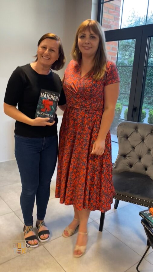 6 maja mieliśmy zaszczyt gościć na spotkaniu autorskim Magdalenę Majcher, autorkę różnorodnych książek - od obyczajowych do bazujących na prawdziwych zbrodniach kryminałach. Spotkanie mimo przeszło 2 godzin trwania minęło nam bardzo szybko, gdyż poruszana tematyka jak i sposób opowiadania naszego gościa dorównywał talentowi pisarskiemu – wypowiedzi były zarówno zabawne, zadziwiające jak i poruszające. Podczas spotkania autorka wyczerpująco odpowiadała na pytania czytelników, a także podpisywała i sprzedawała przedpremierowo swoją najnowszą powieść – Rakowiska.